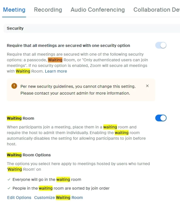 I am having issues with my waiting room not working, when a guest uses my Meeting ID. They can input the code and they get the "Waiting for the Host to let you in" message, but I never see them appear in the Waiting Room.